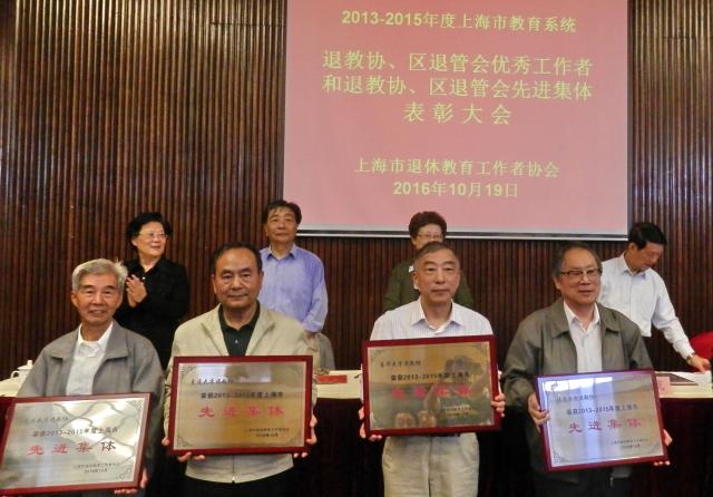 10月19日下午,上海市退休教育工作者协会2013-2015年度上海市教育系统退教协、区退管会优秀工作者和先进集体表彰大会在上海教育会堂举行。我校退教协荣获市教育系统退教协先进集体,退休教师高鑫源、周开宇荣获市教育系统退教协优秀工作者,我校退教协已连续多年获此表彰。