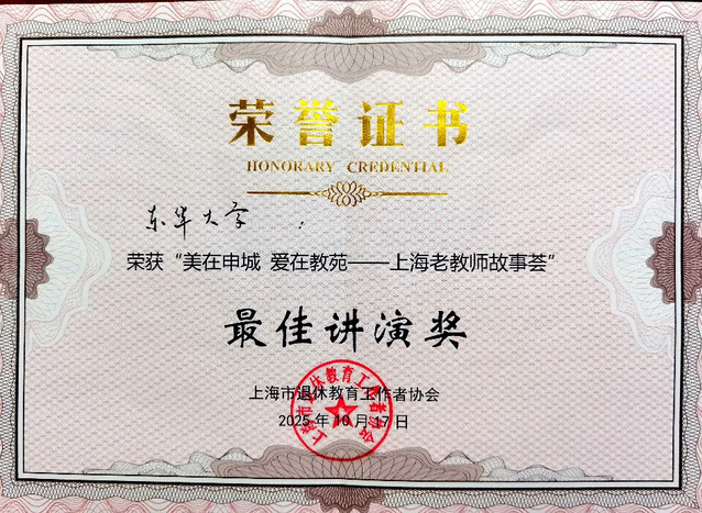 我校90岁高龄的闻力生教授亲自走上舞台,以“为祖国纺织服装事业健康工作70年”为题,充满激情地讲述了自身在退休之后依然努力为国家纺织服装的智能制造贡献力量的经历,最终荣获了“最佳讲演奖”。