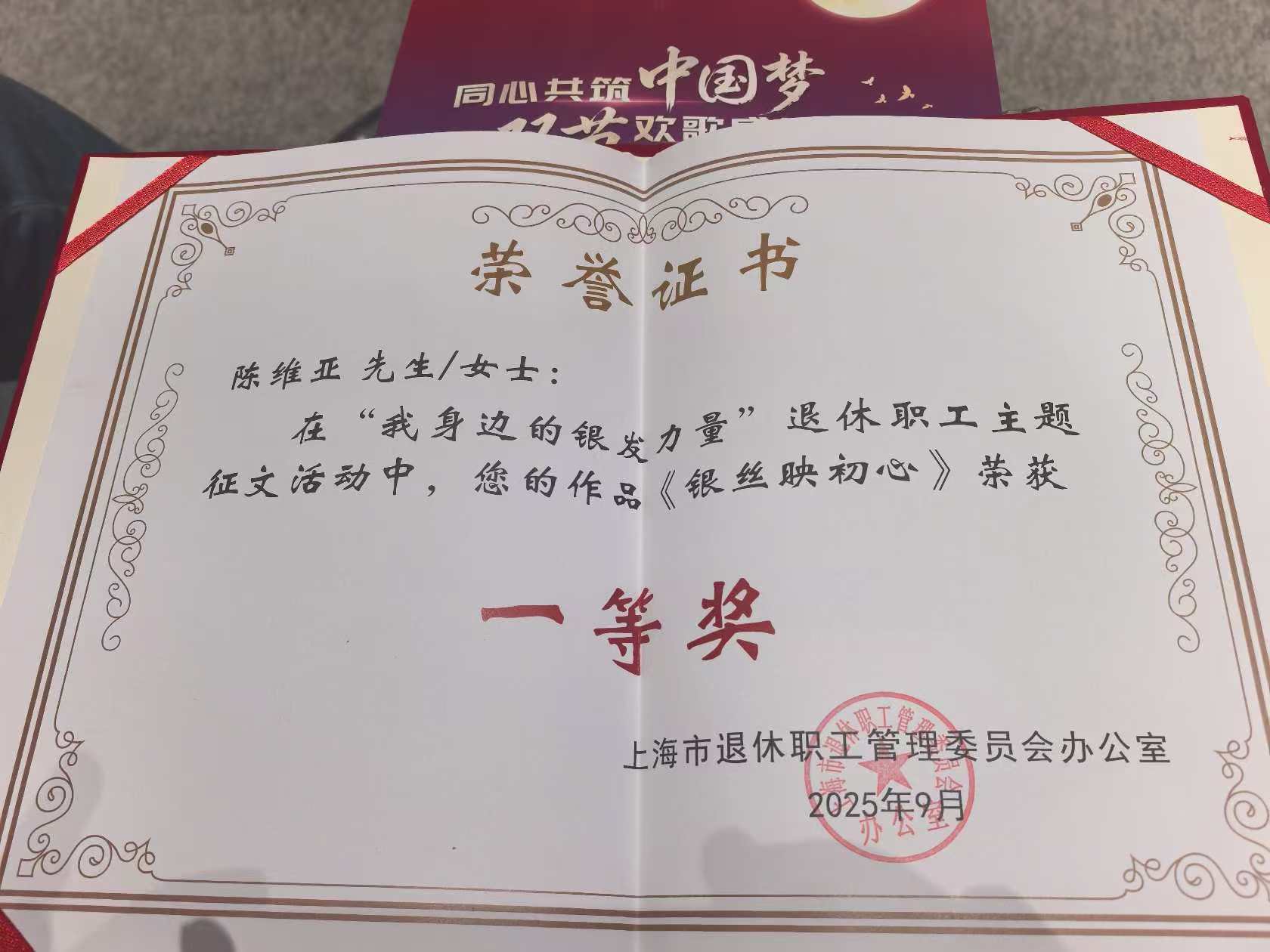 其中,我校退管会陈维亚老师撰写的《银丝映初心》获本次征文活动一等奖,文章主人翁是服装与艺术设计学院退休教师张祖芳教授,文章介绍了张老师带领团队面向大中小学生及各类市民群体热心传播中华服饰文化,创新设计“纸艺华服”献演世界技能大赛闭幕式交接仪式“上海时段”、获评世界设计之都大会全球竞赛TOP100项目、获得上海市“中华文化国际传播”项目活动“银鸽奖”(最高奖项)等感人事迹,文稿主题内涵深刻、文字功底扎实、情感表达真挚,赢得活动专业评审团队的一致好评。同时,旭日工商管理学院退休教师徐明教授的征文《我身边的银发力量》获评优秀奖。本次退管会选送的征文作品生动展现了东华大学退休职工群体在新时代的精神风貌与责任担当,传递了积极向上的银发力量。