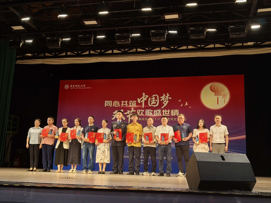 (注:人文学院穆莉老师(右二)喜获上海市“助老爱心模范”称号)
