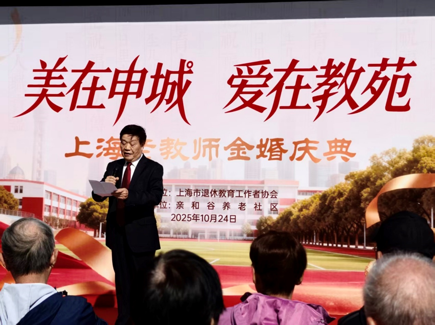 2025年10月23-25日,由上海市退休教育工作者协会举办的“上海老教师金婚庆”在亲和谷养老社区举行,来自11个区和我校等7所高校的18对金婚老教师,以及市退教协和相关单位领导参加了活动。