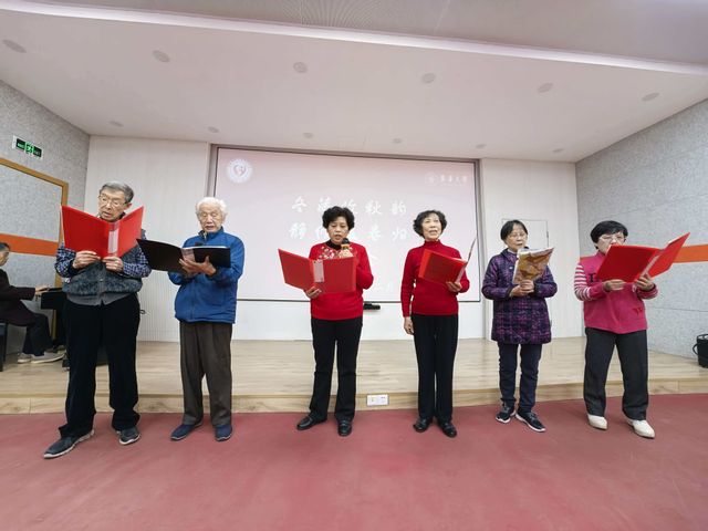 汇演在小组唱《我们的中国梦》的激昂旋律中拉开序幕,熟悉的歌词、深情的演唱,瞬间点燃了现场氛围。随后《花又期》的悠扬曲调响起,这首《沉默的荣誉》主题曲,带领大家重温革命岁月,表达了对革命先辈的深切怀念和对当下幸福生活的无比珍惜。社团中最年长的“90后”退休教师登台献艺,先后带来独唱《老鹰之歌》与《金色的沙滩》,苍劲有力的歌声中,饱含着对生活的热爱与对岁月的深情,赢得全场阵阵掌声。