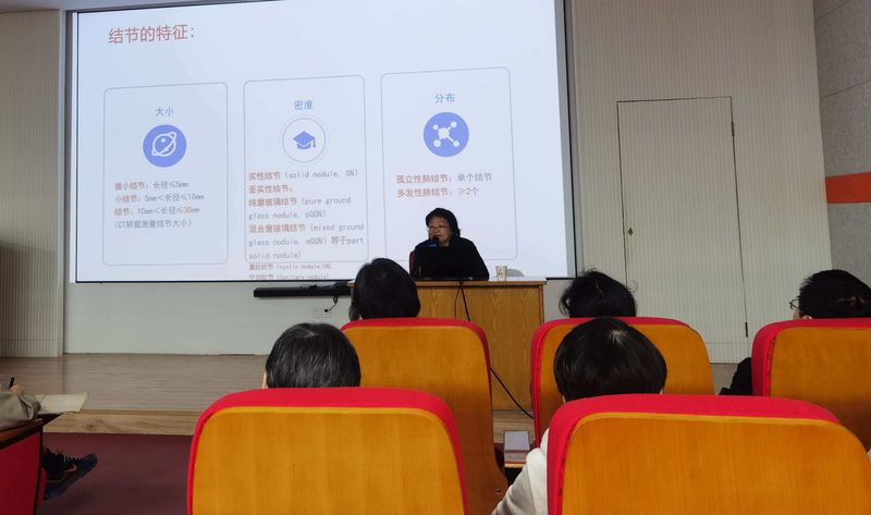 本次咨询会设置两大核心主题分享环节,邀请业内资深专家进行专业讲解。上海市胸科医院放射科主治医生马永红带来《如何解读肺结节的CT报告》专题分享,马医生拥有20余年影像诊断经验,擅长肺部结节良恶性鉴别等领域。讲座中,马医生从肺结节的定义、分类入手,详细讲解了体检报告单的生成逻辑,清晰区分了无需过度关注的良性结节与需要重点警惕的结节类型,同时结合临床案例阐释了肺结节的结局转归与应对策略,特别提醒大家避免“谈磨色变”,科学看待磨玻璃结节,遵循专业建议进行随访或治疗,有效缓解了退休教师对肺结节的焦虑情绪。