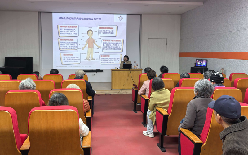 随后,上海市长宁区名中医、天山中医医院内分泌科行政副主任赵啸主任医师以《怎么做才能管好糖尿病》为题展开分享。赵主任深耕内分泌及代谢病临床工作20余年,在糖尿病诊疗领域有着丰富的经验和深厚的造诣。她针对退休教师普遍关注的血糖控制、指标达标、并发症预防等问题逐一解答,明确了糖尿病患者个体化血糖控制目标的制定原则,强调血糖管理需兼顾血压、血脂、体重等综合指标达标,同时详细介绍了糖尿病肾病、视网膜病变、神经病变等慢性并发症的定期筛查频率与方法,还结合中医特色诊疗理念,为大家提供了科学的糖尿病日常管理方案,引导退休教师走出血糖控制的认知误区。