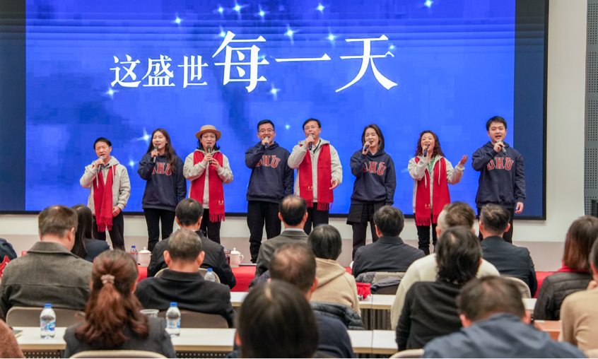 项延训代表学校向荣休教师致以敬意,向新教职工表示祝贺,并对全体教师提出三点期望:一是坚守“为党育人、为国育才”的初心,筑牢信仰之基,把立德树人贯穿教育教学全过程,将个人发展融入强国建设和学校改革发展大局;二是秉持“德高为范、学高为师”的追求,涵养高尚师德,大力弘扬并主动践行教育家精神,以德立身、以德立学、以德施教,关心关爱学生,坚守师德底线与学术诚信,营造风清气正的育人环境;三是锤炼“守正创新、精进不怠”的本领,勇担时代之责。他强调,要紧跟科技革命和产业变革加速迭代的时代趋势,在教学上打造高质量课堂,在科研上聚焦国家战略和学科前沿力争新突破,在管理服务上以改革破解发展难题,提升治理效能和治理水平,书写建功“十五五”的崭新篇章!