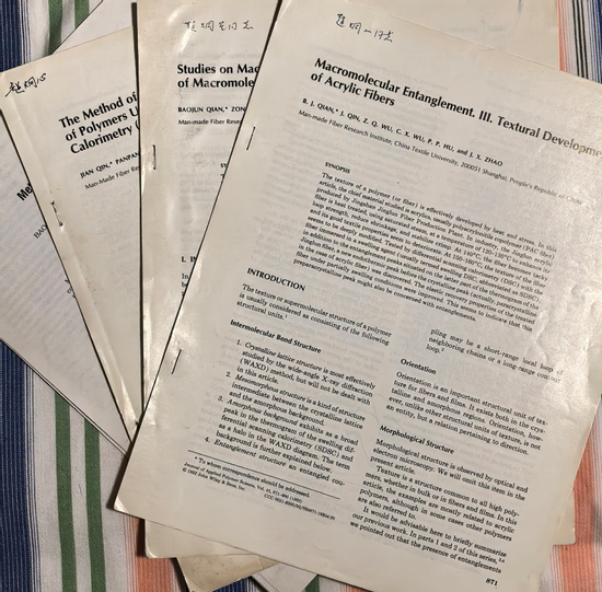 留校后,我进入了钱宝钧先生的课题组。当时钱先生已经八十多高龄,他选择了高分子科学中的一个难题:大分子缠结开展研究工作。每天上午他都会来到课题组和大家进行学术讨论。有趣的是,有时讨论会发生大声争论,在走廊上就能听到争论的声音。大分子缠结的理论研究难度大,但其研究成果的应用对高性能纤维的研究与开发作用巨大。当时,钱先生提出了大分子天生缠结的概念,在SCI杂志上连续发表了多篇系列文章,我有幸也成为作者之一。后来,我的一位博士研究生的学位论文中的一个章节也应用了钱先生关于大分子缠结理论。